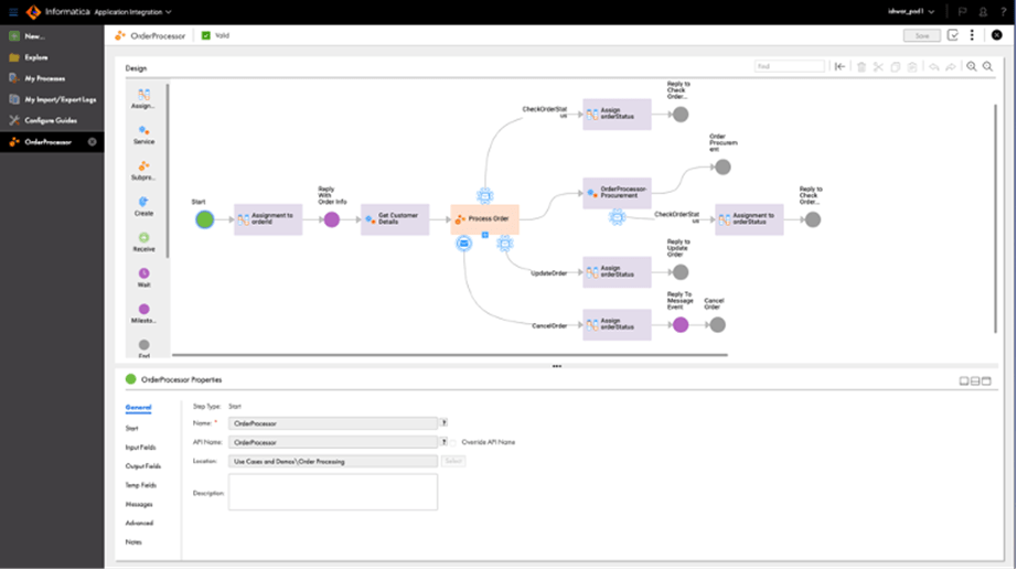 После подключения к разным платформам требуются инструменты оркестрации потока данных между разными процессами, приложениями, каналами и точками взаимодействия, чтобы максимально упростить общение клиентов с компанией. Оркестрация процесса обмена данными может охватывать различные архитектурные модели, форматы данных и протоколы передачи данных. Informatica поддерживает оркестрацию потока данных на основе сообщений, API и событий.